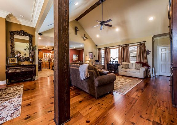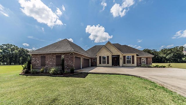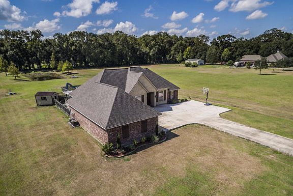 Lafayette Parish but quiet country living! This home is stunning. Walking in you are immediately impressed with the real wood floors and cathedral ceilings. With this open floor plan your eyes are drawn to the custom kitchen. All cypress cabinets and huge granite island make this a perfect one for family gatherings. Cozy sitting area off of the kitchen is just right for the view of the backyard oasis. There is a inviting covered patio with cypress beamed ceiling and custom TV cabinet. Enjoy the summers in the salt water pool equipped with a swirly slide for the kids! Dad will enjoy the 3 car garage and the 2 acres with a pond for afternoon fishing. This home feels special and definitely has something special for everyone. Don't miss it!!!