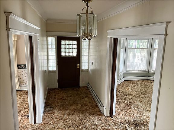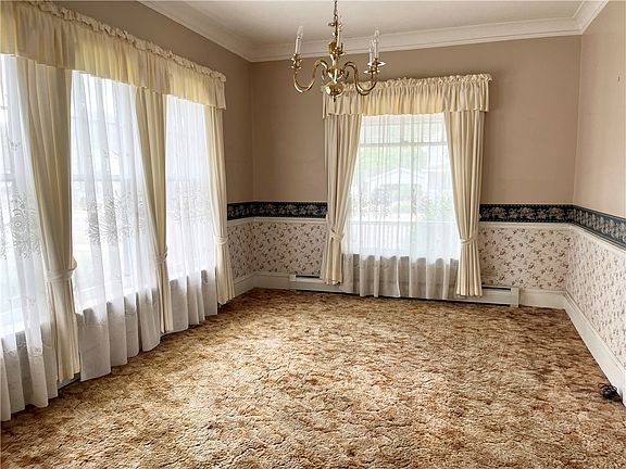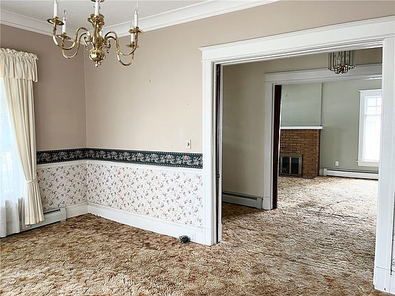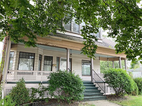 Sitting on a triple side lot in the Village of North Hornell is this 5-6 bedroom home with its detached 3 Car garage. Stepping onto the front porch you will feel like you are home. Great space for quiet evenings. Through the front door is a large foyer area. From here to your right is a large formal dinging room, on your left of the foyer is the formal living room. Straight ahead is access to the upstairs. Off the formal living room is a family room with built in shelving and cabinets . Going through the family room towards back of the home is a half bath , a mud room area by the back door and from here you have access to the basement and the kitchen. Second floor houses the 5 bedrooms, a sun room and a full bathroom. Up to the third floor is a huge finished living space perfect for another family room or a 6th bedroom. Full basement, second floor storage area above the garage. Black topped driveway with plenty of area for parking. This is a great home and has so much more potential.