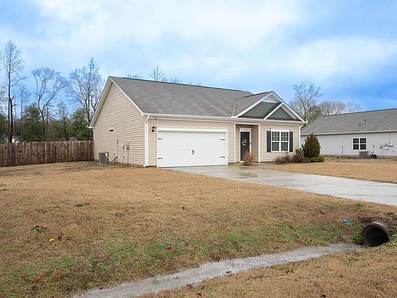 Welcome to this charming 3-bedroom, 2-bathroom ranch, built in 2021 and situated on a spacious half-acre lot. This beautiful home offers the perfect blend of privacy, where homes are thoughtfully spaced apart. Step inside to discover an inviting open floor plan and a modern kitchen with a central island - ideal for entertaining friends and family. The fenced-in backyard is a true oasis, offering a private retreat where your kids and furry friends can play freely and safely. Close proximity to Seymour Johnson Air Force Base: Ideal for military personnel and their families and an hour drive away from the vibrant city of Raleigh. Enjoy a community atmosphere without feeling crowded. Don't miss the chance to own this stunning home that combines modern conveniences with the comfort and privacy your family deserves.