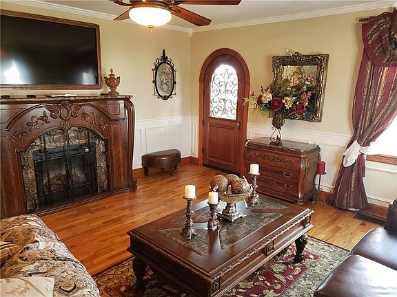 This iconic home offers major updates all done while retaining the original character and charm. Featuring replacement windows, updated furnace and A/C, premium shingles on house and garage, and matching stainless appliances, the major updates are already done! With all the modern modern updates and convenience, this home also offers all the charms of hardwood floors, wainscoting, brick arched doorways, stone fireplace surround and custom hearth. Situated on 1.4 acres, enjoy the space of the country with highway access and all municipal utilities. The 2 car detached garage offers secure parking while the additional garage is perfect for a workshop, hobby space, or social lounge. This home also features an unfinished upstairs space for amplee sotrage, or a blank canvas for your own ideas! All personal property is negotiable for a truly move-in ready home!
