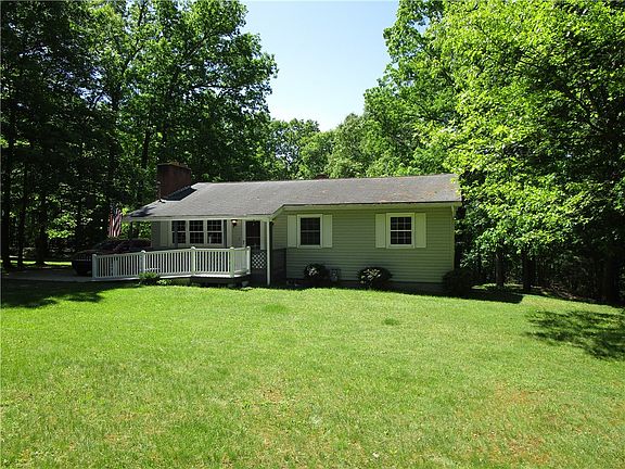 quality built ranch home with many updates on almost ten wooded acres ,sits way back from the road ,quiet road, many walker and joggers.