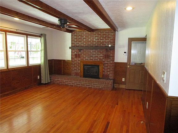 this home has newer roof,windows and siding, with insulation added under the siding,newer kitchen with island and ceramic floors,wood burning fireplace in living room converted to a gas fireplace, hard wood floor thru out , two full baths, six panel doors ,newer front door and sliding door. area of newer homes ,very private back in the woods,integral garage is 26 x 14 ,detached garage is 36 x28 , 12 x 8 shed with a soft floor ,seller does not want buyer going inside for safety reasons.first floor laundry, plus hook ups for laundry in lower level,