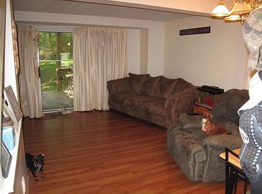 updated with newer laminate flooring through first floor. Fresh paint for upstairs bathroom. Great rear deck and woods view.