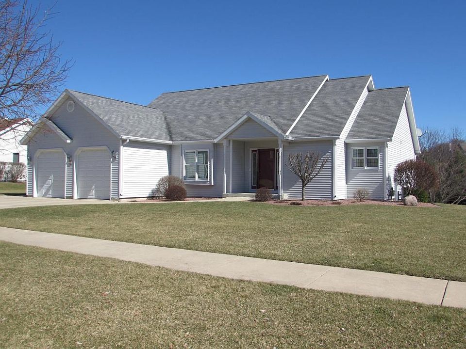 Like new 4BR 3BA open concept split ranch w/full finished lower level. Located in desirable Shiloh Hills subdivision. This home features: vaulted ceilings, gas fireplace, hardwood floors, first floor laundry, master suite w/tray ceiling, walk in closet, whirlpool tub and separate shower. The walk out basement has a huge family room, 4th BR, and full bath. Sliding doors leading to large deck on main level and patio on lower. You will .love the gorgeous landscaped yard.