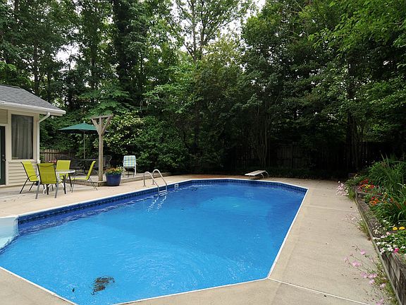Enjoy this cool treetop setting convenient to all points of Chapel Hill and Carrboro. Vaulted ceilings and a wonderful poolside courtyard make this the perfect in-town retreat while the fenced yard provides excellent privacy. You will find lots of hardwood floors, excellent storage, tasteful renovations in the baths and kitchen and a good separation of space for upstairs/downstairs living. The sunny breakfast room has beautiful views to the inviting pool and nice landscaping. Walk to Umstead Park and Bolin Creek Trail.