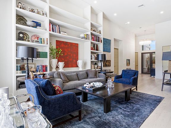 Welcome to sophisticated single-level living at its finest. This meticulously reimagined residence showcases over 1 million dollars in top designer renovations, that blend contemporary elegance with timeless luxury. Rich white oak flooring complemented by matching white oak doors. The kitchen has a show stopping chef's kitchen featuring an oversized Taj Mahal quartzite island, white oak cabinetry with loads of storage and pull out drawers. Premium appliances include 48'' Blue Star range, Sub-zero refrigerator, and Miele dishwasher. adjacent dining area with white oak bar, Taj Mahal counters and Zellige handmade tile backsplash with Sub-zero beverage and wine refrigerators. Custom closets in all suites, bathrooms in all suites. Impact windows and doors, new pool deck, retractable screens, overlooks a tranquil lake and pool with a waterfall and zellige handmade tile with new landscape lighting around the backyard. do not miss this one!