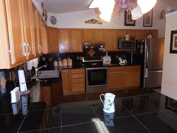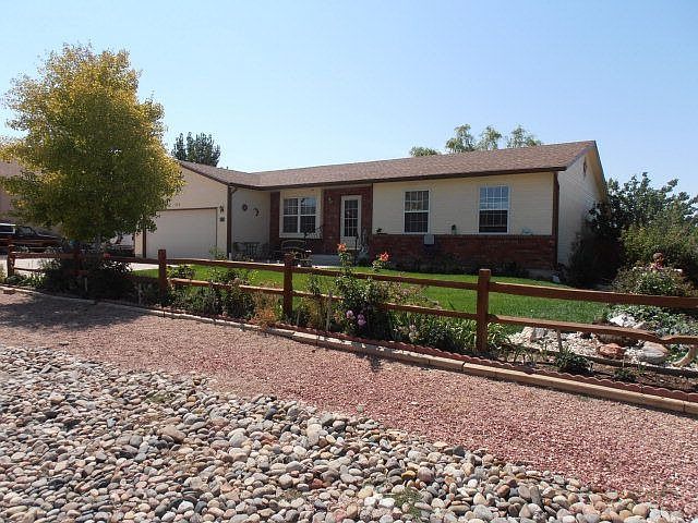 Totally updated, quality rancher has a great floor plan and a beautiful new kitchen. It has new real hardwood flooring and tile throughout the main level and also features a finished basement. The garage is a finished 2 car and there's even a carport for extra parking or your boat or RV. The fully landscaped back yard features a huge covered rear patio and deck combination accessible from the dinning room and master bedroom. It also has a large shed, is fully fenced and includes a few fruit trees. The finished basement has with 2 very large conforming bedrooms, a recreational room and more. The home is located in the Desert Hawk Golf Course area with nice views and easy commutes to Pueblo and Colorado Springs! It's also just couple minutes from Lake Pueblo. All appliances included!