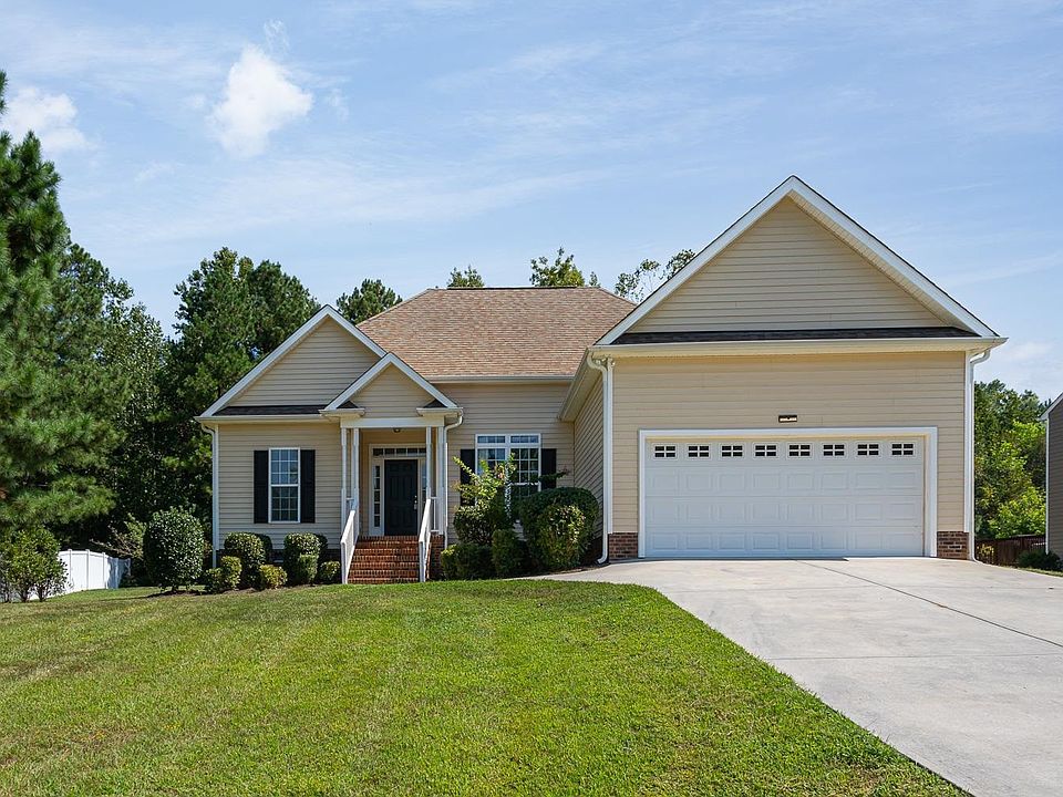 Lovely light filled ranch home centrally located between Henderson and Oxford. Close to I-85 for easy commutes and shopping. 3 bedroom and 2 bath open floor plan home with a 2 car garage. Living room with vaulted ceiling and a cozy fireplace. Separate dining room plus breakfast room with lots of windows. Main living areas have hardwood floors and new carpet in the bedrooms. Kitchen with all appliances and pantry. Generously sized primary bedroom with walk in closet, soaking tub, walk in shower and double vanities. Step outside to the nice sized deck and patio. Enjoy the huge flat back yard perfect for your outside fun and games.