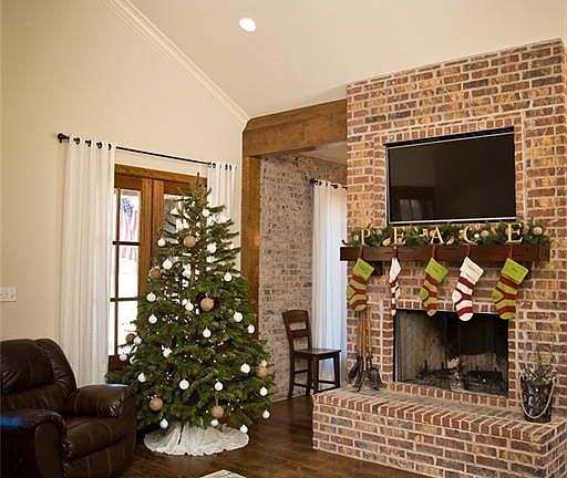 This Custom built home is only 2 yrs old. Better than new. Custom features include 10 ft ceilings with brick accent wall, Brick Fireplace, Cathedral Ceiling, Open kitchen with granite counters and brick backsplash, custom island with butcher-block counter. 4 Bedrooms 2 bath, Split floorplan with Master bedroom secluded with wood trey ceiling, Home Office. On demand hot water,2 car garage built for larger vehicles. Beautiful landscaping with view of stocked pond full of bass!