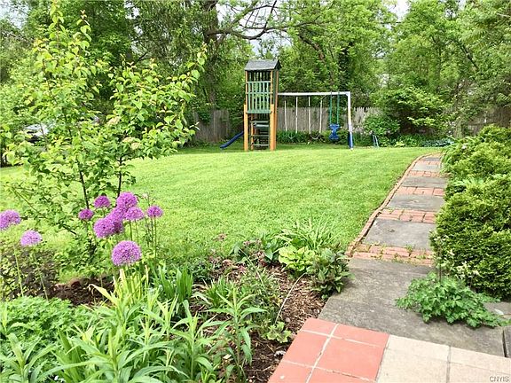 Don't miss this fantastic colonial located in the Jamesville-Dewitt School District! Corner lot at the end of the street for more privacy. Plenty of space in this wonderful 4 bedroom, 2.5 bath colonial w/finished basement. Large eat-in kitchen with slider to sunny updated Florida room w/all new windows and carpet! Family room with gas fireplace. Hardwoods throughout. Second slider in formal dining room leading to beautiful deck and amazing perennial gardens. Swing set is included in sale.