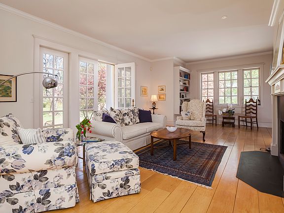 SIMPLY EXTRAORDINARY Designed by renowned architect James Wassell, this custom Farmhouse is as special as it's setting. From random width oak floors up to the peaks of vaulted wood ceilings and tall sun filled windows - every detail is thoughtfully crafted. Impressive master suite views private rear yard from balcony. Master Bath includes steam shower, jacuzzi tub and twin sinks. Flowing floor plan with modern design offers flexibility for home office or in-law suite. Bounded by stone walls from times past, the gracious acre site offers a private courtyard that opens to expansive level lawns with flowering trees and gardens. This setting has even hosted more than one romantic wedding! It's a home you can make YOUR memories in. Home Warranty included.