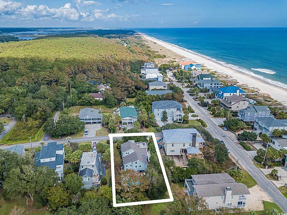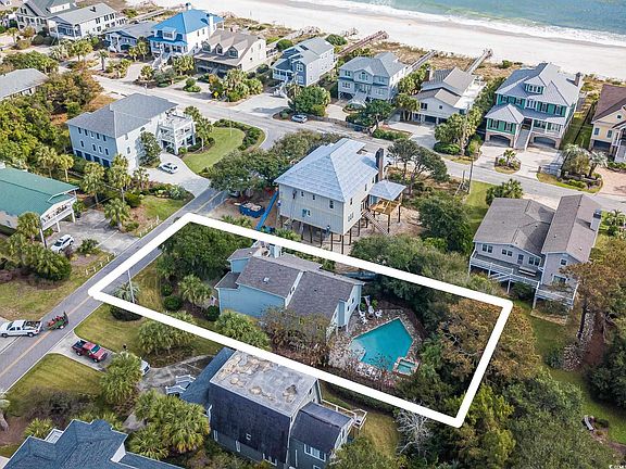 Steps to the beach! Here is a "must see" opportunity to live in the desirable N. Litchfield Beach neighborhood. This recently renovated, fully furnished 5-bedroom, 5.5-bathroom 2nd row raised beach house offers the elegant simplicity of coastal living. As you step inside, you'll find casual sophistication with professional interior designer finishing touches. The open chef's kitchen offers natural light, premium appliances from KitchenAid, including a 5-burner gas stove, quartz countertops, and ample entertaining space around the classic island configuration. The open floor plan flows throughout the house, creating a welcoming and relaxing retreat! The tranquil primary bedroom includes recent updates and a beautiful private bath with a walk-in shower. Two additional ensuite bedrooms are on the main floor. The drive under carport includes ample storage for your beach accessories and toys. The new (2024) limo golf cart (included) is waiting to take you on a happy hour cruise through this beach neighborhood. Enjoy the large, heated salt-water pool, hot tub, and fire pit. The covered entertainment area with a big screen TV is the perfect spot for that family gathering and low-country boil. Professionally landscaped with an irrigation system and lighting, your oasis is turnkey and ready to enjoy. Feel the ocean breeze as you relax on the screened porch upstairs off the main living area. The property is steps to the beach and Huntington Beach State Park, close to various shopping/dining destinations and Brookgreen Gardens. Don't let this be the one that got away!