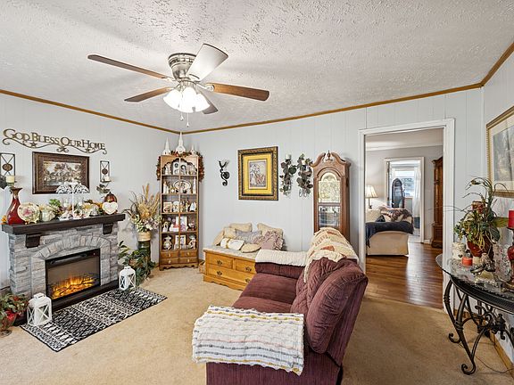 Welcome to this rare 23-acre homestead featuring a blend of timeless character, flexible living space, and rolling Tennessee landscape. Originally built in 1953 and thoughtfully expanded over the years, this 3-bedroom, 3-bath home offers multiple living areas—including an office, sitting room, spacious living room, and a bright sunroom with sweeping views across the property.