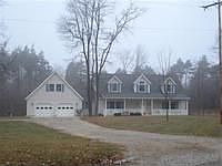 Nestled in the pines, newer construction Cape Cod. Convenient location to tri-county area. Attached garage features bonus room, perfect for at home office. Formal dining room open to kitchen featuring built-in desk and snack bar. All appliances included. Main floor master bedroom suite with two closets, separate shower and tub. Open stairway to two extremely large bedrooms with walk-in closets. Full finishable basement. Enjoy the peacefulness of the quaint country setting on your covered front porch.