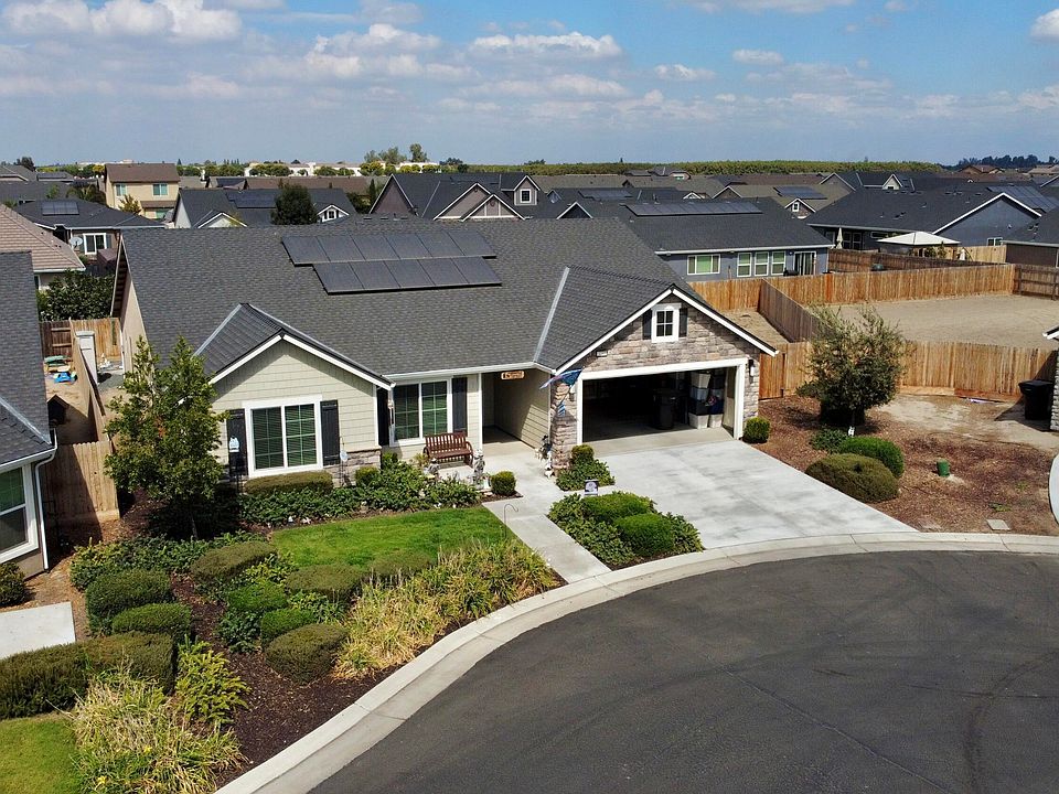 This beautifully maintained smart home sits at the end of a quiet cul-de-sac in the award winning Windmills gated community. The house is perfectly located in this gated community a few houses from the fabulously maintained recreation area containing a sparkling swimming pool, volleyball court, clubhouse, children's play area and large green fields to play or just relax. The perfect place to safely play, host family parties, entertain friends and make great family memories. Even more impressive than the Windmills' many amenities is the quality of their home construction. This 2001 square foot home feels even bigger as you venture into the great room, kitchen, and dining area with high vaulted ceilings. The floors throughout this area are adorned with beautiful and durable laminate flooring. This smart house is prewired for Alexa, meaning many features can be run remotely through a smart phone app. Use your app to lower the lights, turn up the music, even bring you pizza (well, not yet), but you can save electricity by turning on your air conditioning using the Nest just before coming home to relax in style. Speaking of saving electricity, this home is very energy efficient! It has an instant water heater delivering piping hot water to all areas of the house instantly. It also has a very efficient south facing 11-panel solar system on an affordable power purchase agreement. Over the past year, the current owner's bills have ranged from a low of $51 in the winter to a high of $172 in the heat of summer. The kitchen has elegant granite countertops, rich cabinets, a stainless steel sink and gorgeous matching stainless steel appliances. The open kitchen is a perfect place to cook while hosting friends and family. The refrigerator and washer and dryer are included with the house.