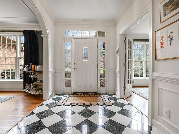 Fantastic opportunity to live on the 9th green of Glenmore's golf course - classic brick home offers an ideal layout with all the essentials on one floor living and the perfect balance of open concept and private spaces in which to work or relax. The home office works well as a den or library. The formal dining area offers the perfect spot to dine and entertain. The living room has built-in shelves and a new gas fireplace for cozy gatherings. The kitchen has ample counter space, bar seating, double ovens, a walk-in pantry and Breakfast Room for casual dining. Enjoy the sun room and brick terrace - watch the sunsets each evening and marvel at the backyard views. The primary suite is spacious and sunny with 2 oversized closets and terrace access. The 2nd floor has TWO bedroom suites, both with private bathrooms. All 3 bedroom suites have walk-in closets and spacious baths - absolute luxury! The 2 car garage is a side entry which opens to the kitchen. Everything on your wish list is here including fenced back yard, new roof, and newly encapsulated crawl space plus the setting is superb. Don't miss the golf cart garage! Please note - Purchaser of this home qualifies for Glenmore Resale Program - initiation reduced 50% (see attached).