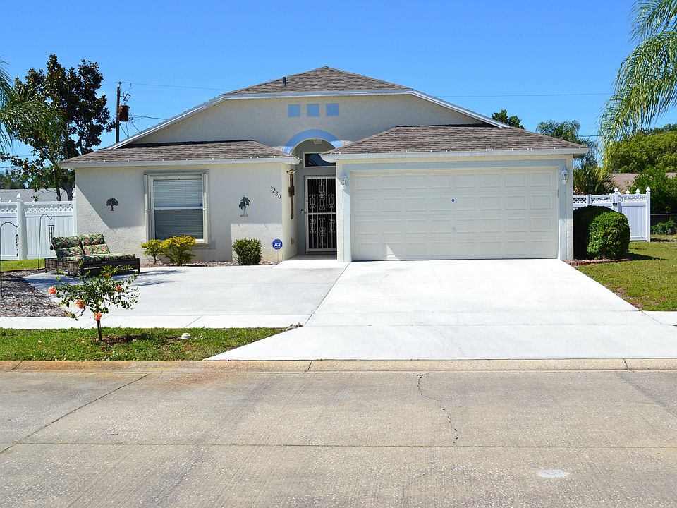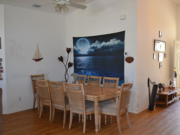 Great floor plan on this 3 bedroom 2 bath home in desirable area of Titusville. High ceilings in the great room and kitchen area. Home has spacious breakfast bar with full view into family from kitchen. Roof was replaced in 2017. Gutters around the whole house and a whole-house generator when we have a hurricane. Split bedroom plan. Private well for watering lawn. Extended driveway really makes parking easy.