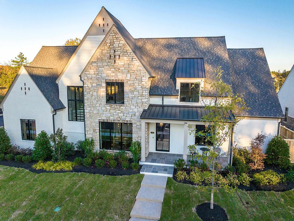 2025 Fall Vesta Home: The Augusta. Located in the Hidden Creek subdivision in Collierville. Built by Greg Bridgers, Southern Serenity Homes, the St. Jude Dream Home Builder of the Mid-South. Designed by Galey Grimes Interiors. The main level offers dining, living, a kitchen with breakfast room and scullery, office, guest suite with full bath, and laundry with a dog bath. Natural light fills the great room accented by timber beams and a stone fireplace, while the kitchen showcases custom cabinetry and designer finishes. The vaulted primary suite creates a spa-like retreat. Upstairs features two bedrooms, two baths, and two bonus/flex rooms, the larger perfectly sized for a golf simulator. Outdoor living impresses with a covered terrace, outdoor kitchen, fireplace, and pool, plus a convenient half bath for poolside use. Crafted with signature Southern Serenity quality, The Augusta is timeless, elegant, and designed to live beautifully.