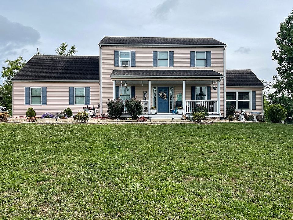 Charming Country 2 story Family Friendly home with lots of new updates and partial finished basement sitting pretty on 2.26 acres M/L. JUST REDUCED $10,000! Lovely 2-story Farmhouse Style Home with great curb appeal! What a deal! A Must See!! This 4-BR/3-BA family oriented home has so many great newly remodeled features - New Kitchen w/pantry & Beautiful Oak Cabinets w/pull out drawers, granite countertops, double oven, ref., DW & microwave. Open to large dining room w/gas log fireplace, plus extra shelving/bar. French doors open to large deck with 24ft above ground pool. New living room. Lg. Master BR w/BA & walk-in closet. Nice partial finished basement w/BA & high ceilings, 10'' poured concrete. 2-car attached garage. Concrete walkway w/lighting. Heat pump/AC. Sits on 2.26 acres (m/l) Small fenced in area for farm animals and a great spot for a garden. Won't Last! Approx. 4.7 miles to city.