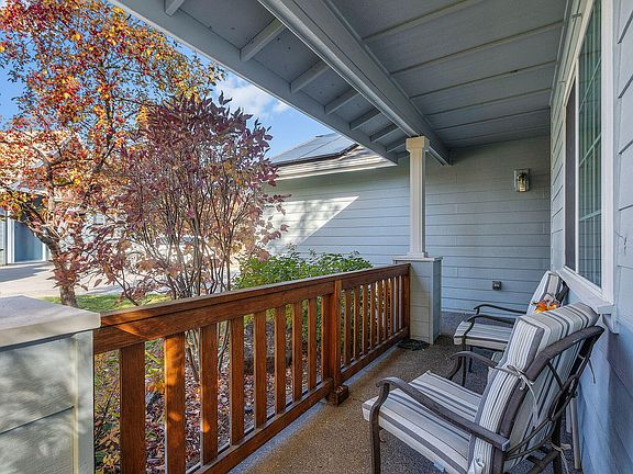 Are you looking for a private, single-level Bend home with a peaceful backyard retreat? This 4-bedroom home sits tucked away on a quiet flag lot surrounded by mature landscaping. Inside, you'll find an open and bright layout with vinyl floors throughout, wide hallways, and easy ADA-friendly access. The living room features a cozy gas fireplace, and the kitchen's peninsula bar is perfect for casual dining. Ceiling fans in every room, new exterior paint, a newer roof, and solar panels show pride of ownership. The yard feels like your own secret garden — lush, quiet, and ideal for relaxing or entertaining. Close to Ballers & Brews, 10 Barrel Eastside, and the canal trail, this home blends accessibility, privacy, and comfort in one rare Bend find.