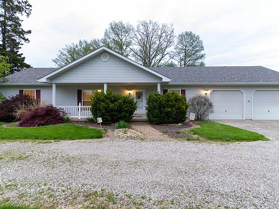 2 ACRES OF SERENITY! Lovely 3 bedroom home with split design having master suite on one end and secondary bedrooms with bathroom on opposite end. Open Living and Dining with lots of natural light from large LR window and dining bay window. Breakfast bar and plenty of cabinets. Master suite with large walk-in closet and large walk-in shower. Laundry room doubles as mudroom to the attached 2 car garage with built in storage. 2nd detached 20x35 garage with 2 overhead doors and electric. HUGE 36x40 pole building with sliding door and TONS of STORAGE space! Nostalgic 20x90 glazed block building with metal roof was once 2 efficiency apartments now offers additional storage space if needed or a chance to relive yesteryear! Covered front porch. Efficient crawl space. All of this on attractive site with mature shade trees and country feel with easy route to town (not to mention easy access to the local golf course)! All appliances included.