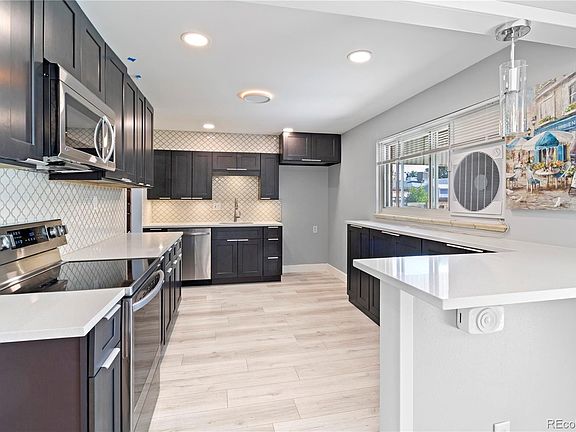 Everythings new, nothing overlooked, in this August 2021 remodeled brick, mid-century, 1-story/ranch near University of Colorado Anschutz Medical Campus, Childrens Hospital, and VA Medical Center. Step into a open living room, featuring exquisite refinished original hardwood floors, leading to the bright dining room and modern kitchen including brand new LG stainless-steel Wi-Fi Enabled True Convection InstaView Electric Range with Air Fry and matching built-in LG microwave oven. Updated lighting, custom tile backsplash, brand new cabinets with plenty of space and room for cooking and entertaining together. 3 bedrooms and full bathroom on the main level and 2 conforming bedrooms with egress windows in the basement and 3/4 bathroom. Full size basement also includes a designated laundry area and extra-large family room with brick fireplace and extra-wide wooden mantle. Oversized extra-long 1-car attached garage. Large backyard with covered patio, full privacy fence, and mature trees. Walking distance to Park Lane Elementary, Sand Creek Park and Trail, Bluff Lake Nature Center, and Peoria Station Light Rail with easy access to I-70, I-225, DIA, downtown, and DTC.