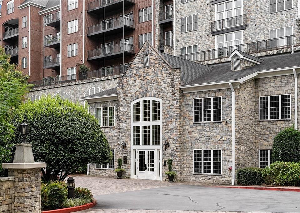 Exceptional top floor unit in a luxury condominium building. Greystone at Vinings is nestled in a secluded setting, yet is only minutes from I -75, I-285, Truist Park, The Battery, Cobb Energy Center, Cumberland Mall, and just a short stroll to Vinings Jubilee. Enjoy the combination of low maintenance living, high quality craftsmanship, and a comfortable lifestyle. This rare 2-story, 3 bed/3.5 bath unit features soaring ceilings and a fireside family room with floor-to-ceiling windows that flood the space with natural light. French doors open to 3 private covered balconies, each with a tree-lined view. The spacious kitchen includes cherry cabinets, stainless appliances, granite countertops, and a cozy keeping room with fireplace. The primary suite on the main level features a spa bath with rich marble flooring, double vanities, frameless shower and soaking tub. 2nd bedroom on main has its own en suite bath. One additional bedroom and bath on upper level, in addition to a large loft space overlooking the family room. Large walk-in closets in every room provide for excellent storage. 2 deeded covered parking spots. Building amenities include a sophisticated lobby, superior security and concierge team, fitness facility, swimming pool, wine lockers, catering kitchen, library and private party/meeting areas. $4,000 in Closing Costs when preferred lender Libby Quiner of Movement Mortgage is used.