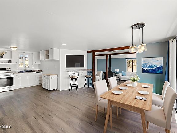 Discover peace, privacy, and panoramic views at this charming gambrel-roofed 3-bedroom, 2-bath home nestled on 2.19 acres in Chino Valley. Surrounded by tall junipers and gentle hills, this two-level retreat, a cozy wood stove, and an updated kitchen with stainless steel appliances and sleek LVP flooring. Enjoy your morning coffee on the spacious covered patio or unwind under the stars in this tranquil, fully fenced yard.