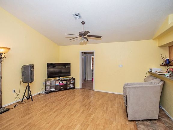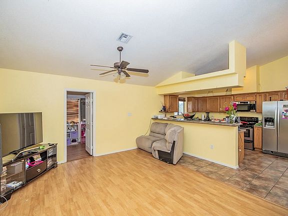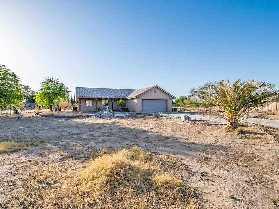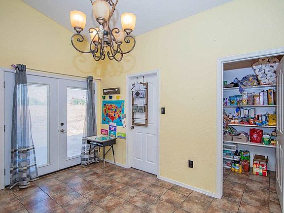 1.79 acres at the end of the cul de sac is the host for this 4 bedroom home built in 2003. Open floor plan with vaulted ceilings. Great room with living area, dining area and kitchen with breakfast bar that has 2 levels. Dining area has French doors to yard. Laundry pass with upper cabinets enters to attached 2 car garage. Tile flooring in kitchen, dining area and bathroom. Wood look laminate in living and hall areas. Tile roof and beautiful front covered patio.