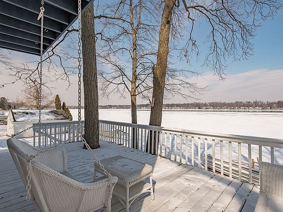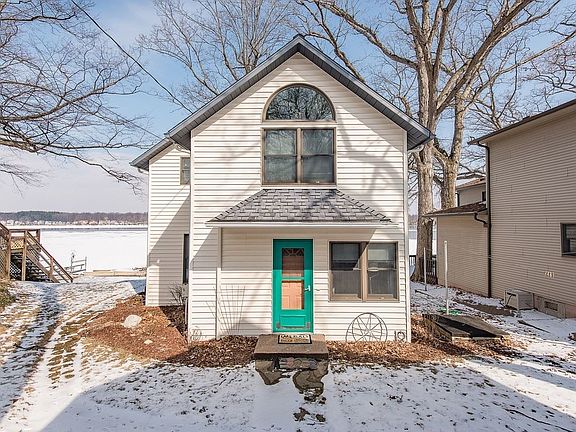 Comfortable Crooked Lake Living! 40' of concrete seawall lakefront and a sandy beach await you! Brand new pier with a bench and ladders. Totally remodeled in 1998. The kitchen and second floor was all new construction. In the past two years all new landscaping was added plus the entire downstairs was painted in neutral earth tones and the deck was completely painted. The spacious living room has gorgeous views of Crooked Lake. A Slider leads to the lakeside deck. The kitchen has a new garbage disposal, lots of cabinet storage and a pantry. All the kitchen appliances and washer/dryer are included. There is a bathroom with stand up shower on the main level. Three bedrooms, a laundry closet and full bath are upstairs. The master bedroom has a cathedral ceiling and sliders to a private deck. Three zoned hot water heat (one zone for the main level, one for the upper level and one for the hot water). There is a 20x18 detached garage with basement for additional storage. Located on the second basin of Crooked Lake, west of the Captains Cabin Restaurant with easy access to town and interstate. Furniture (new 1 year ago), dishes, pots & pans can be purchased for $5,000. outside the sale of real estate. 2018 Smoker Craft 20'-90HP Evinrude W/Trailer can be purchased for $23,000. outside the sale of real estate.