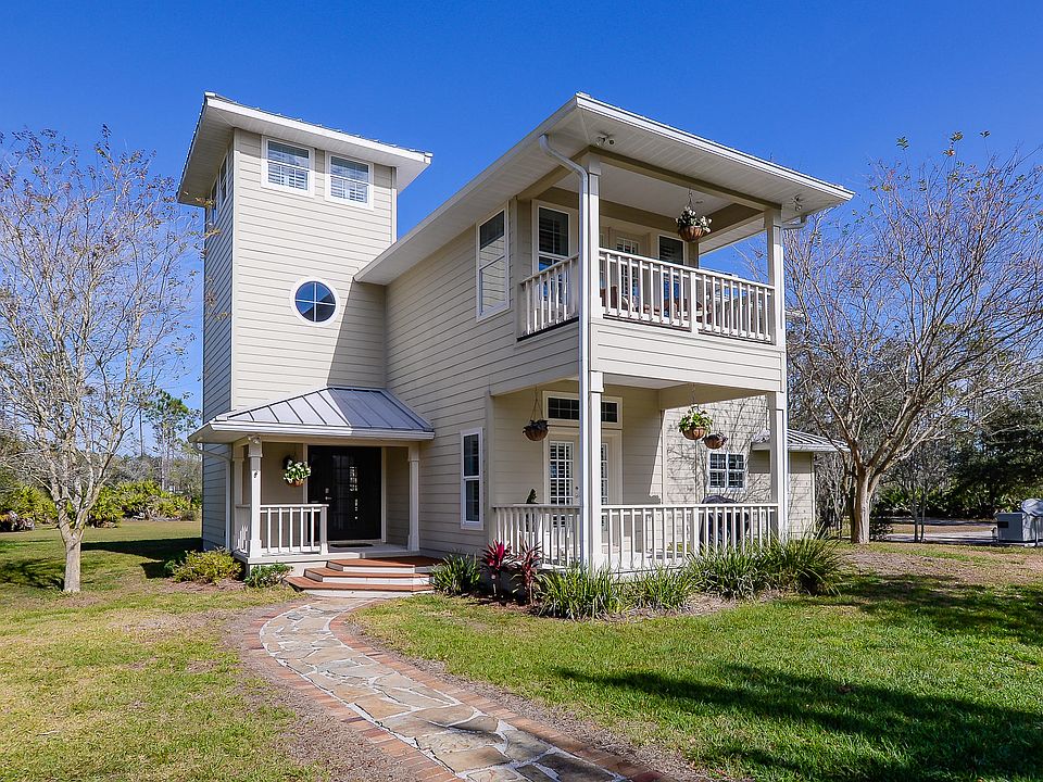 COUNTRY PARADISE with numerous amenities, will take your breath away! Exceptional custom built Key West Style home on a 5.7 acre double lot in a park like setting. Over $75,000 in improvements during 2017/2018. Property features a 3 stall, center aisle barn with a workshop and 2 fenced and gated pastures. The house boasts a metal roof and Hardie Board siding. Complimenting the 3 bed/3 bath layout are multiple patios, a spacious porch overlooking the serene pond, a balcony off the Master Suite and a spiral staircase that leads to an adorable 3rd floor loft. Impeccable custom finishes throughout: beautiful hardwood floors, a magnificent stone fireplace and soaring ceilings with custom, handmade chandeliers.