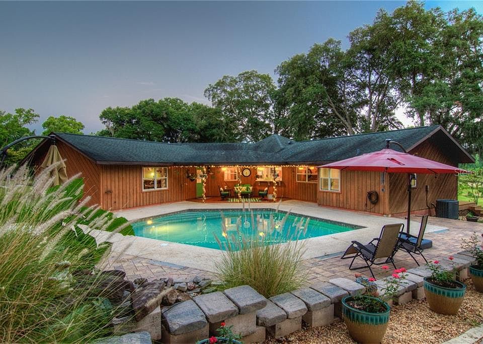 PRICE REDUCTION!! LAKE FRONT COUNTRY HOME! If you are looking for peace and tranquilly in the country, yet conveniently located for easy commutes, you have found it. Well maintained and tastefully updated, this Hillside Lakefront Country Home is perfectly situated on 9.30 acres and is less than 5 miles from I-75. This Custom Cedar home features 3 spacious Bedrooms, 3 full Bathrooms, a large Family Room, Living Room and recently renovated Gourmet Kitchen with Granite Countertops and Stainless-Steel Appliances. The design of the home perfectly captures and features the rolling terrain that leads down to LAKE JASMINE. If you enjoy watching the Sunrises or Sunsets, you will have the perfect seat on the wood deck that wraps ¾ of the home. The family will certainly enjoy the saltwater inground swimming pool and the outdoor BBQ area. As an extra bonus, there is a detached 1,500sf Workshop/Barn with a climate-controlled storage room and concrete floor, the perfect Man Cave. Lister Road is a private access road maintained by homeowners. There is NO Deed Restrictions or Homeowners Association.