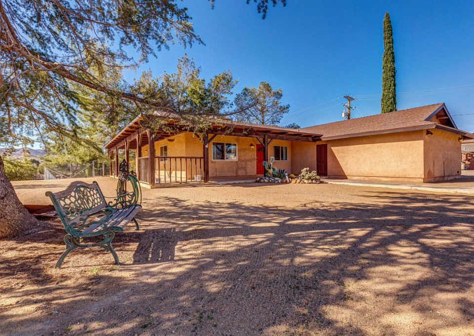 Corner lot home with convenient access to the freeway, shopping, and schools. This 3 + 2 with attached 2 car garage and huge storage shed is on just over one flat and completely useable acre with mature pine trees in the backyard. It has a large kitchen which opens into the living room from one side and the family room from the other side. Recent upgrades include remodeled bathrooms, new carpet, and retrofitted windows. Enjoy the open space or bring your RV and horses. Enjoy the fireplace at night or sit on the wrap around porch just waiting for you to bring a chair and look at the stars.
