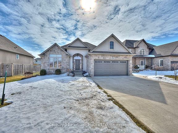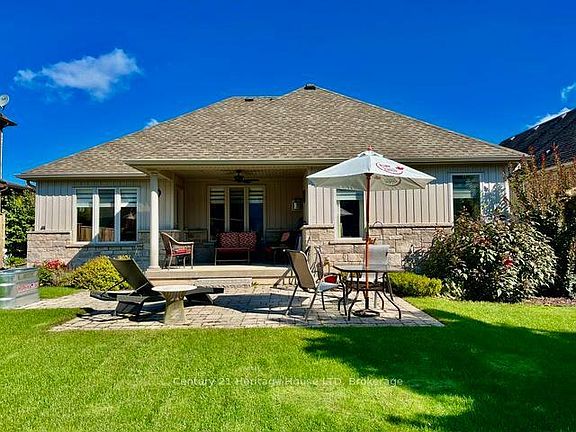 If you are looking for a move in ready Bungalow, in a great location, where neighbors become friends, this home is for you. Home is in impeccable condition. Step inside to discover a bright, open layout filled with abundant natural light. Stunning stone and stucco exterior. The exterior landscaping has been beautifully maintained. Location is close to the quaint downtown village of Ridgeway with its unique restaurants, shops, and just minutes from the lake! Twenty inch concrete footings and ten inch walls. Main level with primary bedroom and ensuite, large walk in closet. Second bedroom has ensuite privileges, great for guests. Well appointed kitchen with pantry and dining area, family room with gas fireplace offers a open concept, ideal for family gatherings. Plenty of natural light. Laundry conveniently located on the main floor. Gleaming hardwood and tile throughout the main level. Enjoy morning coffee or evening cocktails on the covered concrete porch. Patio area with gas hookup for the bbq. ideal for outdoor dining and entertaining. Lighted stairs lead to they lower level, with additional 1150 sq. feet, boosting two oversized bedrooms, family room with gas fireplace, bathroom, workout room and plenty of storage. Large windows allow plenty of natural light. The two-car garage and concrete driveway provide ample parking and convenience. Irrigation system in both the front and rear for reduced maintenance keeping lawns and gardens looking great. The layout and neighborhood offer a lifestyle for suited for retirement or a growing family. Schedule a showing today, you won't be disappointed.