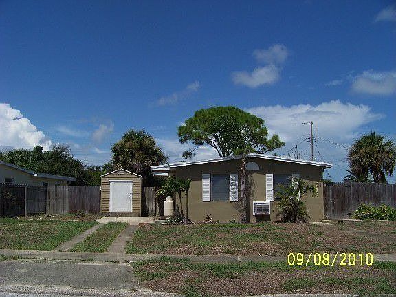 Cute one bedroom one bath home on city water and sewer. Home has eat-in kitchen - living room - large storage shed - privacy fenced backyard Directions: E on Port Malabar Blvd, Right at Second Bianca Dr,left on Abboti Ave, right on Abeto St left on Ideal.
