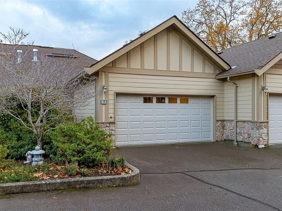 Fantastic one-level townhome in central location! Well maintained two bed, two bath unit offers the perfect floor plan including a spaceous living room, dinning room plus family room. Large primary bedroom with ensuite and walkin closet. Second bedroom and full bath. 9-foot ceilings, hardwood flooring, gas fireplace, heat pump. Southern exposure provides an abundance of natural light into family room, kitchen and primary bedroom. Plenty of kitchen storage, skylight, in unit laundry and central vac. Surrounded by nature and gardens the rear yard boasts distant views and private, southwest-facing patio overlooking green space. Ideal for downsizing, the property has a double garage and crawl space. Bonus-New Roof just completed. Adjacent to the Cedar Hill Golf Course with direct access to the wood-chip walking trail and short distance from Cedar Hill Rec Centre, Hillside Shopping Centre. Professionally managed complex allows cats, dogs (size limit),and welcomes residents of all ages.