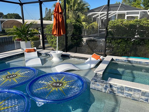 Canal Front home with salt water pool and jacuzzi. Community park with tennis/pickle courts short bike ride away. Four bikes for your use and a three man canoe for sunset paddles on the Peace River. Ten minute drive to downtown Punta Gorda. Both bathrooms just remodeled. Fire pit on lanai for chilly evenings.
