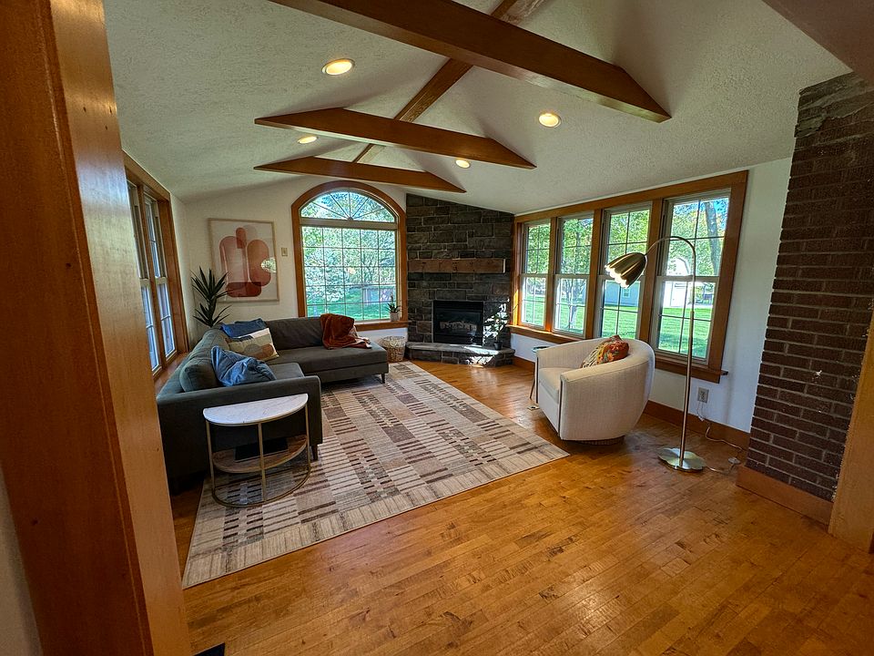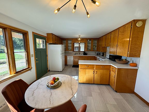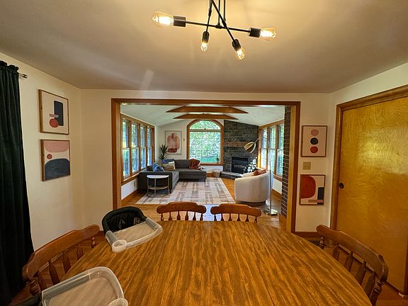 Enjoy our beautiful and furnished ranch in the desired Lake Township. Sitting on an acre this home is move in ready with fresh paint indoors, new flooring in the kitchen, basement and bathroom. Updated light fixtures throughout. Brand new furniture and decor create a mid-century modern look. Bedroom walls left empty for you to personalize with your own style. Each room has a new washable Ruggable rug! The master bedroom has a king size bed and dresser. Two of the three bedrooms are connected with a door, no separate hallway. Right now they are furnished a twin bed in one room and two cribs in the other. All furniture can be stored downstairs if you're not in need of using it. Full bath/shower upstairs with new shower walls and fixtures. A bonus room off the dining room offers a second living room with a fireplace. Laundry is located downstairs. Walkout basement includes 600 sq ft of finished living space with a fireplace. Bathroom downstairs has a shower only. Only 7 minutes from Quail Hallow State Park and town. Outdoor you will notice a new roof, paint and stone walkway. With only three neighbors in site you will have a quiet, cozy place to call home. Lease duration is negotiable. Renter pays utilities including; gas, electric, internet, trash. Renter is responsible for snow removal if needed, pest control if needed and yard maintenance.