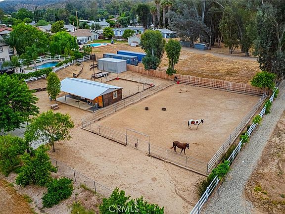**This Wildomar Home HAS IT ALL** Gorgeous House * Pool * Horse Property* Guest House * Easy Freeway Access**** The 2718 SF house is beautifully built and maintained. It was remodeled completely in 2005 and has had many additional upgrades since. Walk into this charmer and you are greeted with soaring ceilings in the light and bright living room. Head to the kitchen which is an entertainer's dream. It opens to a large dining area and family room with cozy wood burning fireplace. Culinary enthusiasts will love the VIKING fridge and the 60” 6 burner, griddle WOLF Range with double oven. The first floor of Wesley also has a large laundry, guest bedroom, a full bathroom with access to the back patio for guest convenience and a large BONUS ROOM that could be a 4th bedroom/studio/office. Step on the GORGEOUS Organic OOLONG HICKORY FLOORING to head upstairs past the custom railings full of charm. Here you find another guest bedroom with ensuite bathroom. The peaceful PRIMARY SUITE awaits you with an expansive walk in closet and oversized shower. This retreat has a great view over the pool and barn as well has tons of space for furniture or to add a soaking tub (plumbing adjacent). Let's head OUTSIDE TO PARADISE-- walk to the outdoor covered kitchen and seating area that is ready for backyard BBQs . Relax in the saltwater POOL AND SPA while you listen to the trickling waterfalls and snack from your organic fruit trees as you gaze down at the stables. ANIMAL LOVERS get ready... Castle Brook BARN - two in/out stalls with pipe corral runs and a third room for tack and storage. There is a 2-horse wash rack, storage shed and separate hay building. Well thought out electric and water hookups are easily accessed throughout. The property is close to BRIDLE PATHS and you have your own LIGHTED ARENA! It gets even better- there is an adorable guest house with Bosch & KitchenAid appliances. This home is meticulously maintained with new pool equipment/pool APP from your phone, upgraded HVAC, manicured landscaping and new hardscape in back yard. This is the home with NO COMPROMISES in an easily accessible neighborhood that allows you quick access to the freeway, local dining and shopping! Hop on the Ortega Highway and you aren't far from Orange County! Low Tax & No HOA. WELCOME HOME TO WESLEY STREET