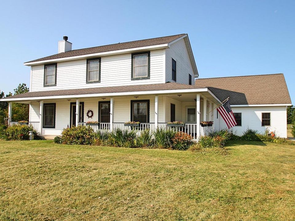 Beautiful country setting, but minutes from town! This custom built house features beautiful hardwood and travertine floors, wood burning fireplace, large wrap-around porch, 1st floor den/office and a beautiful view out of every window! Relax on the stamped concrete patio overlooking 5 acres ringed with trees (including pear and apple) for maximum privacy, garden, and pet invisible fence around entire property! 4 bedrooms plus den PLUS large unfinished space above garage - perfect for more living space! Unfinished basement awaits your ideas!