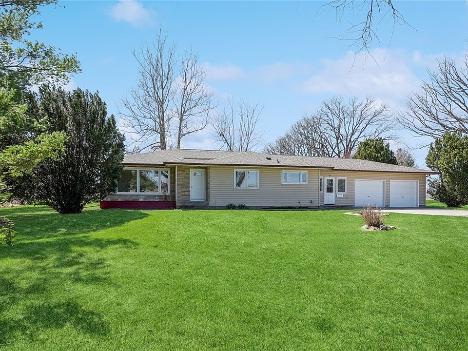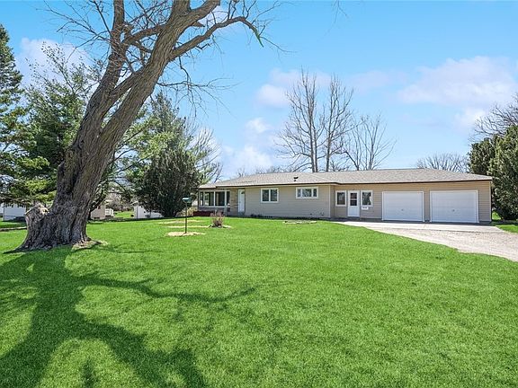 Town & Country Living! Traditional ranch home on over an acre of land with city utilities. The spacious open living room has south and east facing windows for natural light. No need for window treatments: the main floor Pella windows have integrated blinds! The efficient kitchen was recently updated with quality cabinets and appliances, and opens to a dining area large enough for any sized table. Hardwood floors are featured in the three amply sized bedrooms which are located off the hallway on the back side of the home, along with a full bathroom. A main floor laundry is conveniently located near the entrance from the mud room and passes through to the hallway leading to the bedrooms. The breezeway/mudroom runs the depth of the home, with windows on the east and west, and connects the home to the 2 car garage with extra storage space. The full basement with a non-conforming 4th bedroom and 3/4 bath has space enough for a large family room. The 1.15 acre lawn highlights many mature trees that were planted when the home was built. The home has been owned by the same family for over 60 years and has been well maintained.
