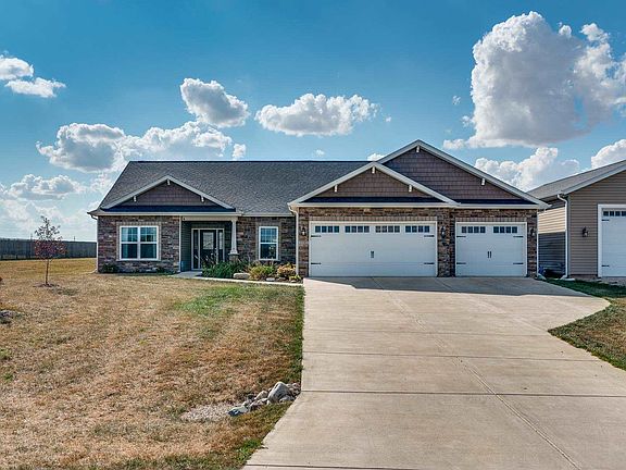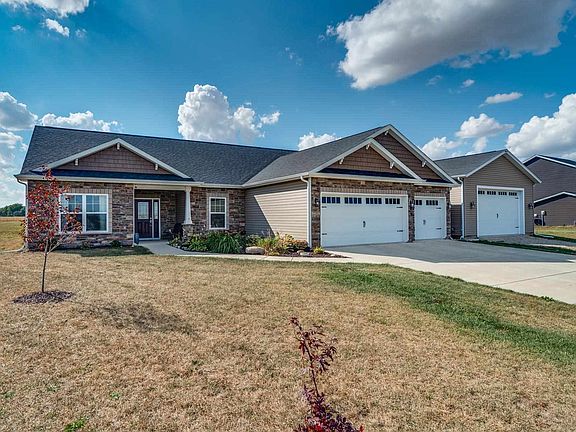 Well-maintained ranch-style home in Delmont Farms in Delphi, now available. The Brenden III offers a split floor plan with owner's ensuite + office or den and oversized eat-in kitchen, 3 car garage and just under 2000 square feet of living space, all positioned on a spacious 1 acre lot! Enjoy this quiet, friendly neighborhood, close to town but tucked away. The kitchen features granite countertops, ceramic tile floors, tall breakfast counters + bar and stainless appliances. The office/ den features French doors and engineered hardwood flooring. The owner's suite features double sinks, a beautiful tile shower and a giant closet! Enjoy sunsets in the huge backyard, that is partially fenced-in! There is a nice concrete patio for grilling and entertaining. But wait, THERE'S MORE! This property also includes a brand new 26x40 FBI detached garage, with 100 amp service done by Artisan Electric! What a great added value - with all that additional storage space and a total of 5 car bays. Beautiful lot + location - make this one yours today!