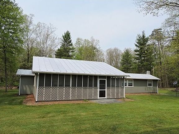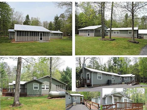 This fully furnished camp sleeps 14, and is in pristine condition. The exterior is maintenance free,and features a large deck and screened-in porch, plus an emergency generator. Inside you'll find an eat-in kitchen with all the appliances, including a washer and dryer. Next you'll find an enormous great room that is 30 x 15, with a huge stone fireplace, and 60 inch TV.The great room leads to a large screened in porch. the 4 bedrooms accommodate 14 people, with 2 baths. The water is heated by a Rinnia water system. Also included with the property is a one car detached garage with walk-up attic, and a workshop, and tool bldg, all in excellent condition. Also has a stream w/native trout. Surrounded by 60 acres that adjoins Nat'l Forest.