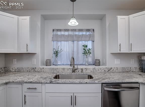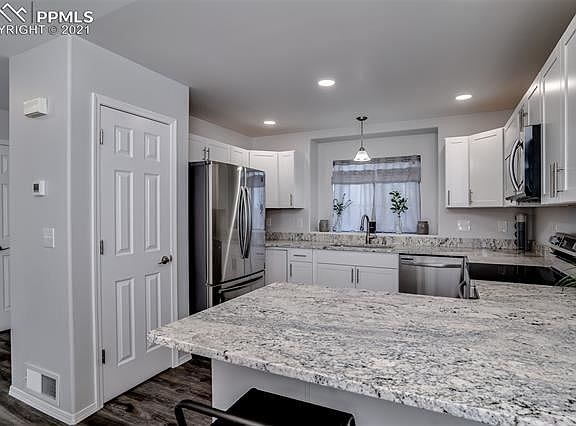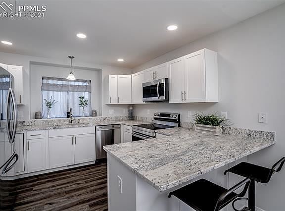 This Beautifully remodeled 4 Bedroom 2 bath 2 car Ranch style home has a NEW finished basement, new carpet, flooring and interior paint throughout. The Kitchen has been completely updated with white shaker cabinets, gorgeous Granite countertops with an eat-in breakfast bar great for entertaining! NEW Samsung Stainless Steel appliances, New Central Air, washer and dryer and Home Warranty included! Located minutes away from Fort Carson, Peterson AF Base, I-25 and the Powers Corridor!