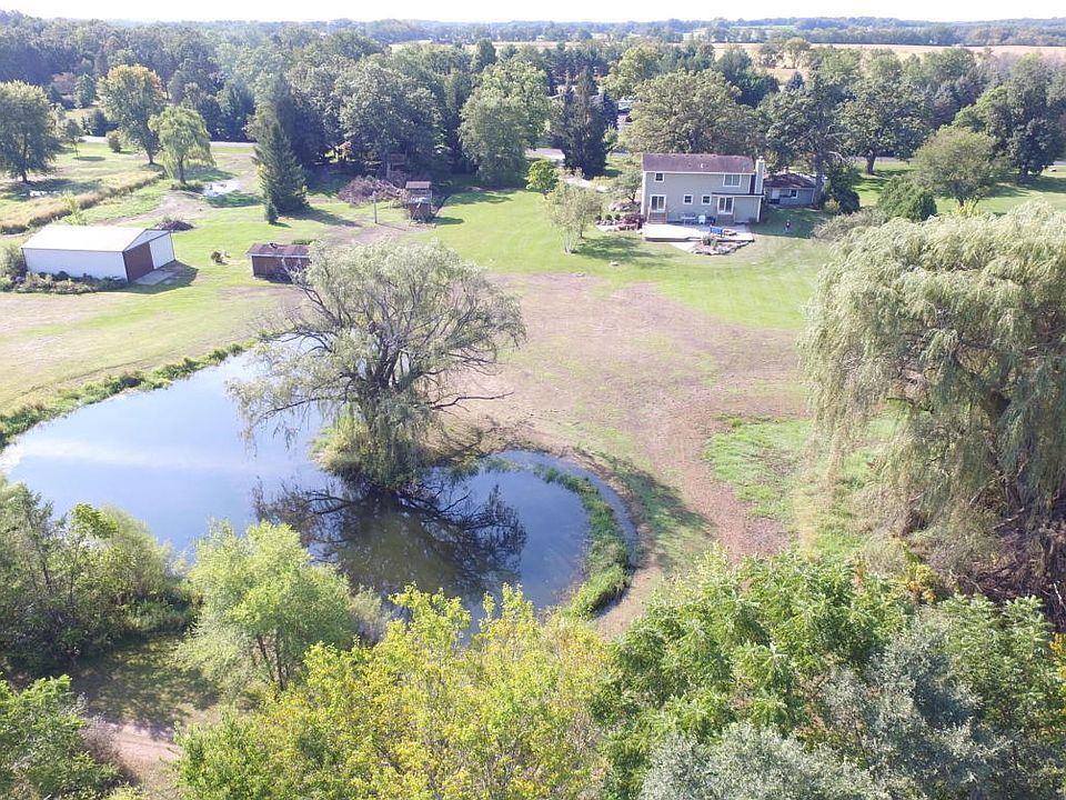 Amazing home with the perfect outdoor setting. Enjoy peace and quiet from the 27x42 rear patio w/built in fire pit. Watch wildlife visit the private pond or work your hobbies in the 36x30 pole barn. Once inside, this home offers a tiered living room w/cross corner fireplace and a completely remodeled kitchen with breakfast bar and French door pantry. Upstairs features split master suite with attractive M/bath plus 3 sizeable bedrooms. L.L. boasts a family room, exercise room, 5th BR, a full bath plus two storage areas & a workshop. A walkout to side yard and a front porch finish off this gem.