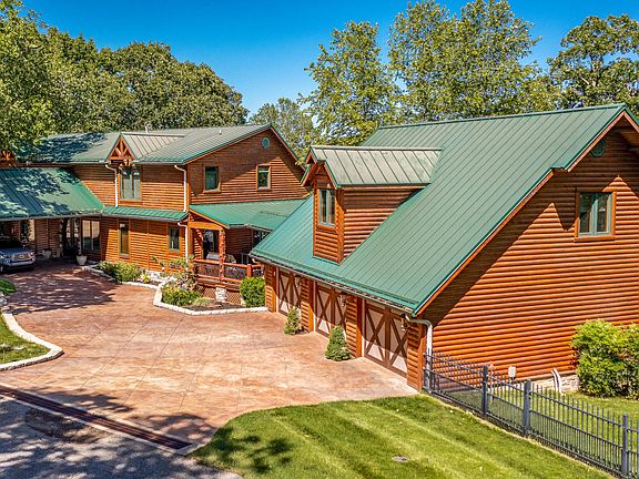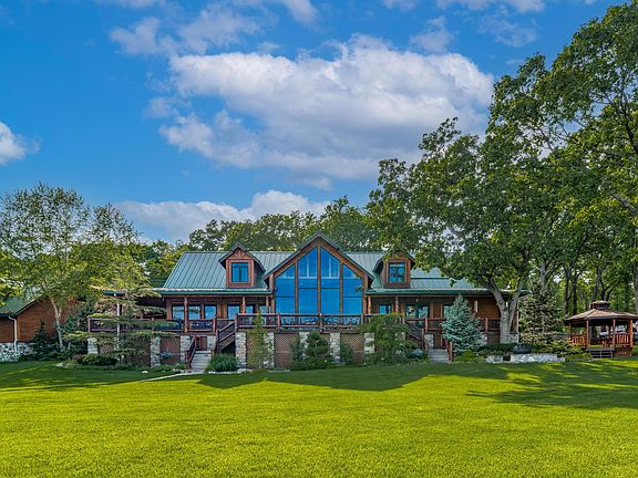THE Cedar Lodge on Duck Creek! 237 feet of gentle sloping waterfront, deep water, 2 slip dock, 6 bed/6 bth (includes garage apartment). Primary suite on main floor offers steam shower, 2 huge master closets, walkout to covered deck and fantastic views. Chef's kitchen w/ separate pantry, and storage galore. Upstairs offers 3 guest rooms, game room, living area w/kitchenette. Covered wrap around porch w/ custom metal railings. Garage has room for 6 cars, and is finished w/storage, etc. Apartment offers kitchenette + spacious enough to sleep 6-8 people. Completely updated boat dock w/ 30 ft & 40 ft boat slip w/ swim platform. Lakeside gazebo + firepit! Short walk to Arrowhead Restaurant & Marina. No restrictions or HOA's + short term rentals are allowed! Home detail sheet in documents.