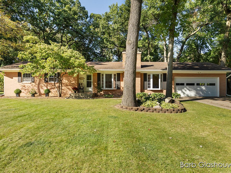Must see this Classic, charming, all brick, 3 bedroom 1-1/2 bath ranch home nestled on almost ½ acre with sprawling front and backyard with tall, majestic trees in popular Blythefield Community! Exceptional curb appeal, spacious, sun filled living room/dining room, hardwood/tile flooring throughout, newer windows, granite kitchen counters, built in cabinetry, two fireplaces, main floor laundry and delightful screened in patio overlooking spacious backyard. Neighborhood offers walkability to numerous parks, easy access to Rogue River and a community pool. Other features include: Fresh paint throughout, updated landscaping, in-ground sprinkling, gutter screens and a storage shed. Basement offers family room with 2nd fireplace.... and storage. The backyard abuts to a wooded easement owned by Consumers Energy. For a small annual fee, homeowners can utilize the land. Neighbors have extended yards, installed bonfire pits, vegetable gardens, playground equipment, etc. Prime location! Close to the Beltline, restaurants, grocery stores and easy to navigate around town. See Additional Home Information online. Don't Miss! Open House Saturday 10am-12pm. SELLER just added offer deadline: Saturday, September 21 at 4pm.