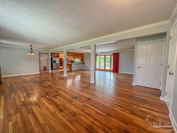PRICED TO SELL!! Back on the market! Unique home on 2.45 acres located on a quiet, dead-end street just minutes from shopping, restaurants, 9 Mile Rd and I-10 for quick access to anywhere in town. The home features New Paint throughout; GEOTHERMAL Heating and Cooling plus a Daiken Mini-split in the Master Bedroom; New Roof - 2018; a Rinnai TANKLESS WATER HEATER; Hardwood and Tile floors in the main level; a 1008 sqft WALK-OUT BASEMENT with a huge Florida Room, a full Bathroom, mini Wet Bar and Three Bonus Rooms that could be used as offices, craft rooms, playrooms, etc..., double sliding glass doors that open out to the huge patio w/Hot Tub and pool area; Oversized Two Car Garage; a large 32'x20' WORKSHOP w/New Roof - 2023 and a Huge 35'x35' POLE SHED w/metal roof. The Kitchen has Corian Countertops, Stainless Steel Appliances including Refrigerator, Gas Stove, Built-in Microwave, Dishwasher and Garbage Disposal, lots of cabinets, a Breakfast Bar and a separate 8'x8' BUTLER'S PANTRY! A Huge Living Room/Dining Room combo is just off the Kitchen along with a large Family Room with sliding doors to the 35'x12' Balcony over looking the above ground pool and backyard acreage. The Master Bedroom/Bathroom Suite has a large walk-in closet with built-ins and a cedar plank wall, dual sink vanity w/Corian Countertops and a Walk-in Shower w/Tiled Surround and two shower heads. The two additional bedrooms both feature large closets and are serviced by a hall bathroom updated with Corian-topped vanity and a tiled tub/shower surround. PRICED UNDER MARKET!! And with ALL THIS HOME HAS TO OFFER -- DON'T HESITATE - SEE THIS HOME AND MAKE IT YOURS TODAY!!