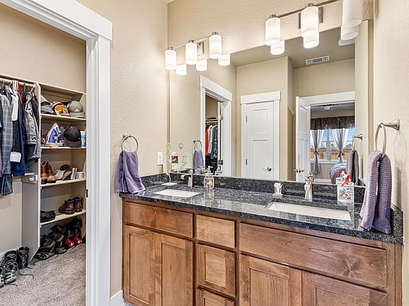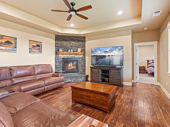Beautiful single level custom home in the Cedar Landing Subdivision. 3 bedrooms and an office, 3 full baths, 3 car garage and RV parking on a large .22 acre lot with views of Roxy Ann. Spacious open concept great room with floor to ceiling stone gas fireplace. Dining room with slider leading out to one of two covered patios. Abundant windows fill the home with light. The kitchen has stone countertops, beautiful cabinetry, an island that doubles as a breakfast bar, high end appliances, built in pantry. Primary suite with walk in closet, primary bath has double vanities and curbless custom tiled shower. Ceiling fans in all bedrooms, office, great room and back patio. Energy star certified. On demand tankless water heater. Hard wired security system with Ring doorbell and motion detector light. Natural gas stubbed to back patio. Back yard has new 15x70 pet rated artificial turf. Lovely Gazebo on back patio. Within walking distance of city park with dog park, walking paths, play structure