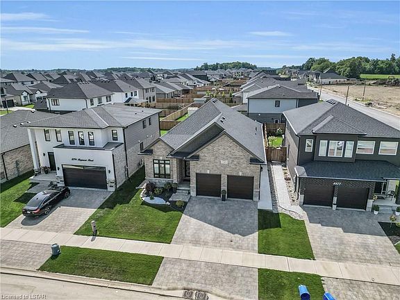 Captivating Bungalow-Style Oasis in the Heart of Talbot Village Estates. Welcome to the home you've been dreaming of! This stunning custom-built bungalow, is the epitome of modern elegance. Constructed in 2020, this residence offers a spacious sanctuary with approximately 1,646 square feet of luxurious living space on the main floor, complemented by a fully finished basement. This immaculate home boasts 2+2 bedrooms and 3 full bathrooms, ensuring plenty of space for your family and guests. As you step inside, you'll be greeted by the grandeur of 10' high ceilings, providing an open and airy ambiance. The main entrance features a convenient walk-in closet. Revel in the exquisite engineered hardwood flooring and the sleek 8' tall interior doors that add a touch of sophistication to every room. A main floor office, which could easily serve as an additional bedroom, offers flexibility to suit your lifestyle. Culinary enthusiasts will adore the large kitchen, complete with a 4' x 8' island featuring quartz countertops—a perfect spot for gathering and entertaining. Cozy Ambiance: The 50-inch linear electric fireplace in the living area adds warmth and charm to the space. The primary bedroom includes a spa-like ensuite with double sinks, remote-controlled bidet and a walk-in closet featuring built-in organizers. Impressive fully finished basement boasting open living space, 2 bedrooms, 3-piece bathroom, and plenty of storage. Step outside to discover a two-tier deck and a covered porch, offering an ideal setting for unwinding amidst meticulously landscaped surroundings. Enjoy the convenience of living close to parks, shopping centers, schools, and easy access to Highway 401. Plus, exciting plans for a park across the street and a new neighborhood school will enhance the community even further. The property features an owned tankless water heater. Don't miss this incredible opportunity to own a home where style, comfort, and convenience converge. Schedule a viewing today!